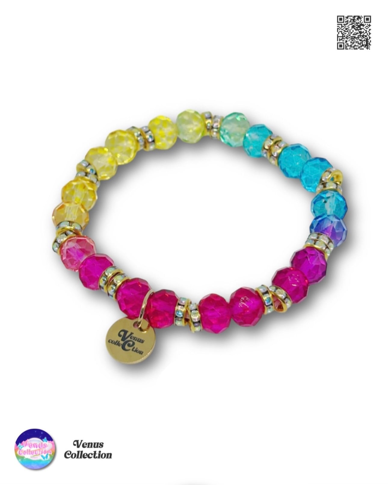 鮮やかなグラデーションが美しい、ビビッドカラーのレインボーブレスレット。